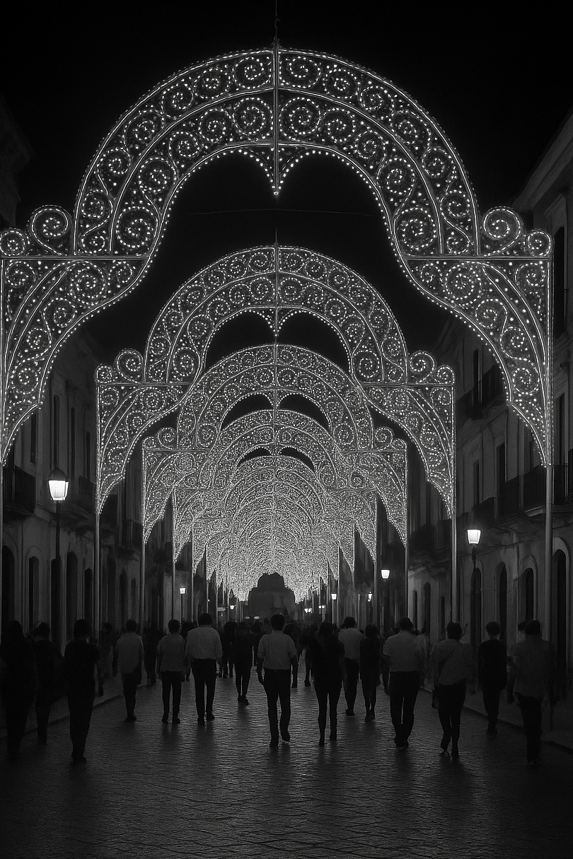 Gli occhi di chi passava erano fissi sulle luminarie, io però guardavo lei. Sempre lei, la mia ipnosi.